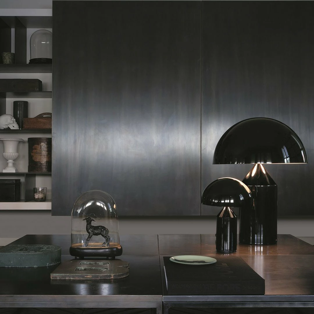 Created in 1977 by Vico Magistretti, Atollo has become over the years the archetype of the table lamp, winning the Compasso d’Oro in 1979, and completely revolutionizing the way of imagining the classic abat-jour. The geometric shapes that compose it – the cylinder, the cone and the hemisphere – have given birth to a decorative and essential product at the same time, detached from the historical period by the fashions of the moment and has now become one of the icons of Italian design.
