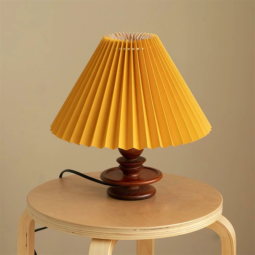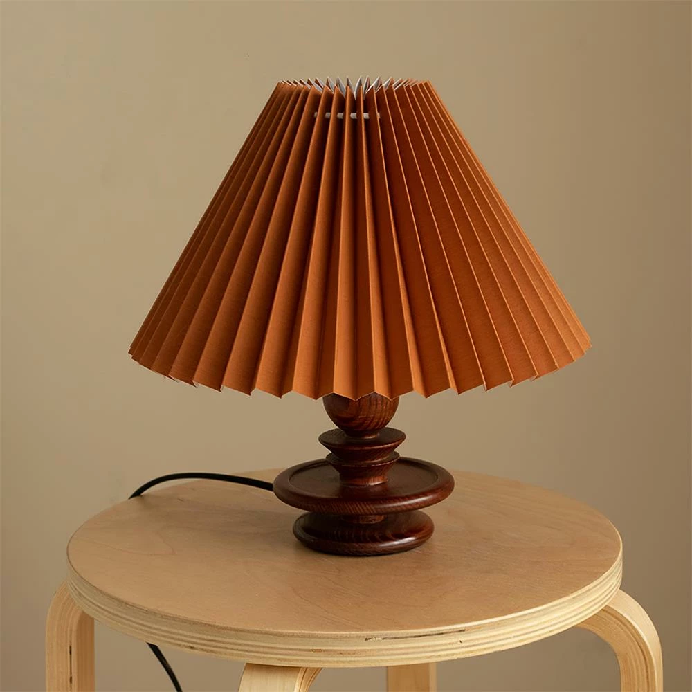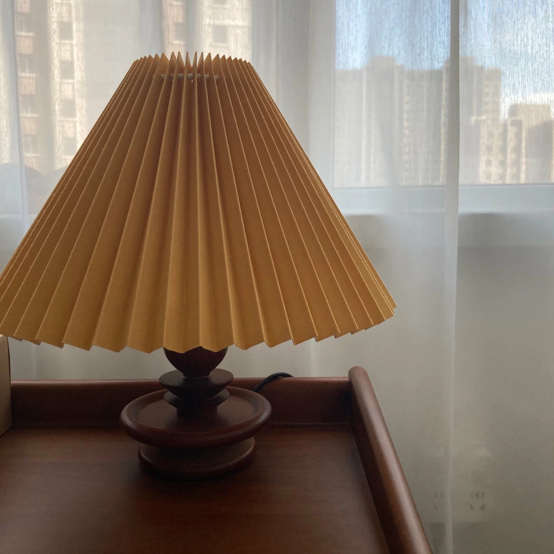 A table lamp, designed and produced in United States, 1960s. Features finely Ash wood of different species. Handcrafted Linen Pleated Shade. With beautiful original patina.