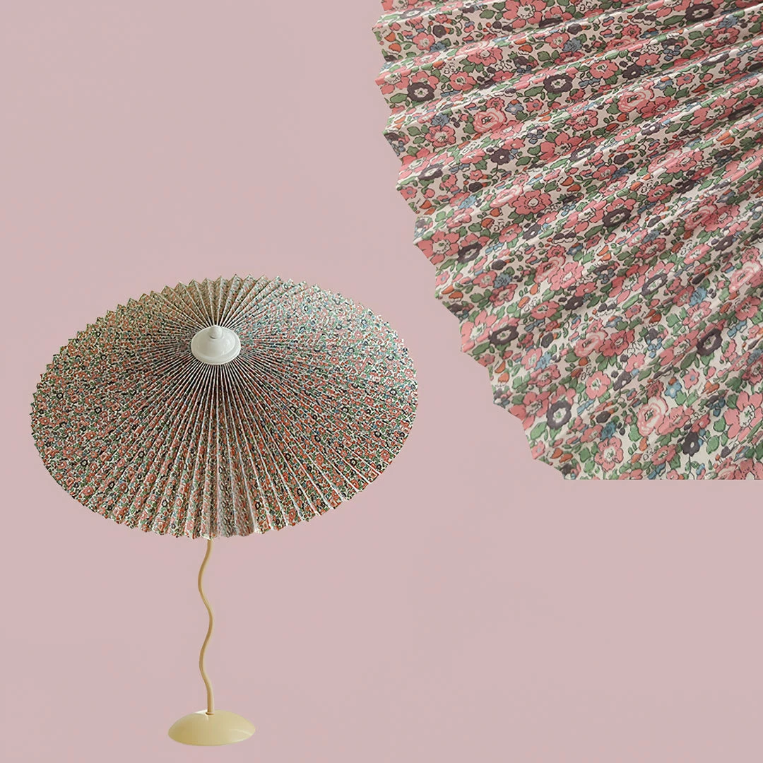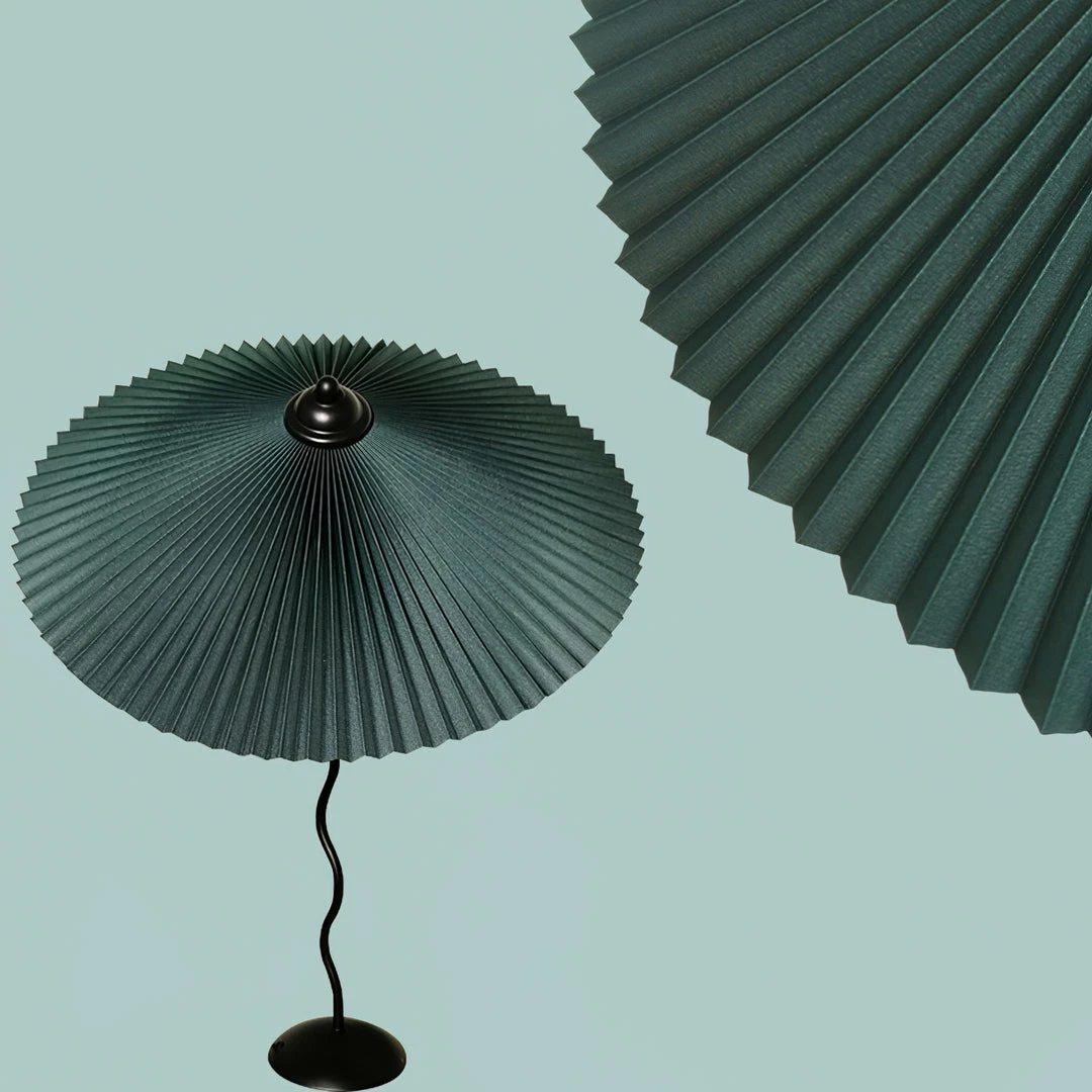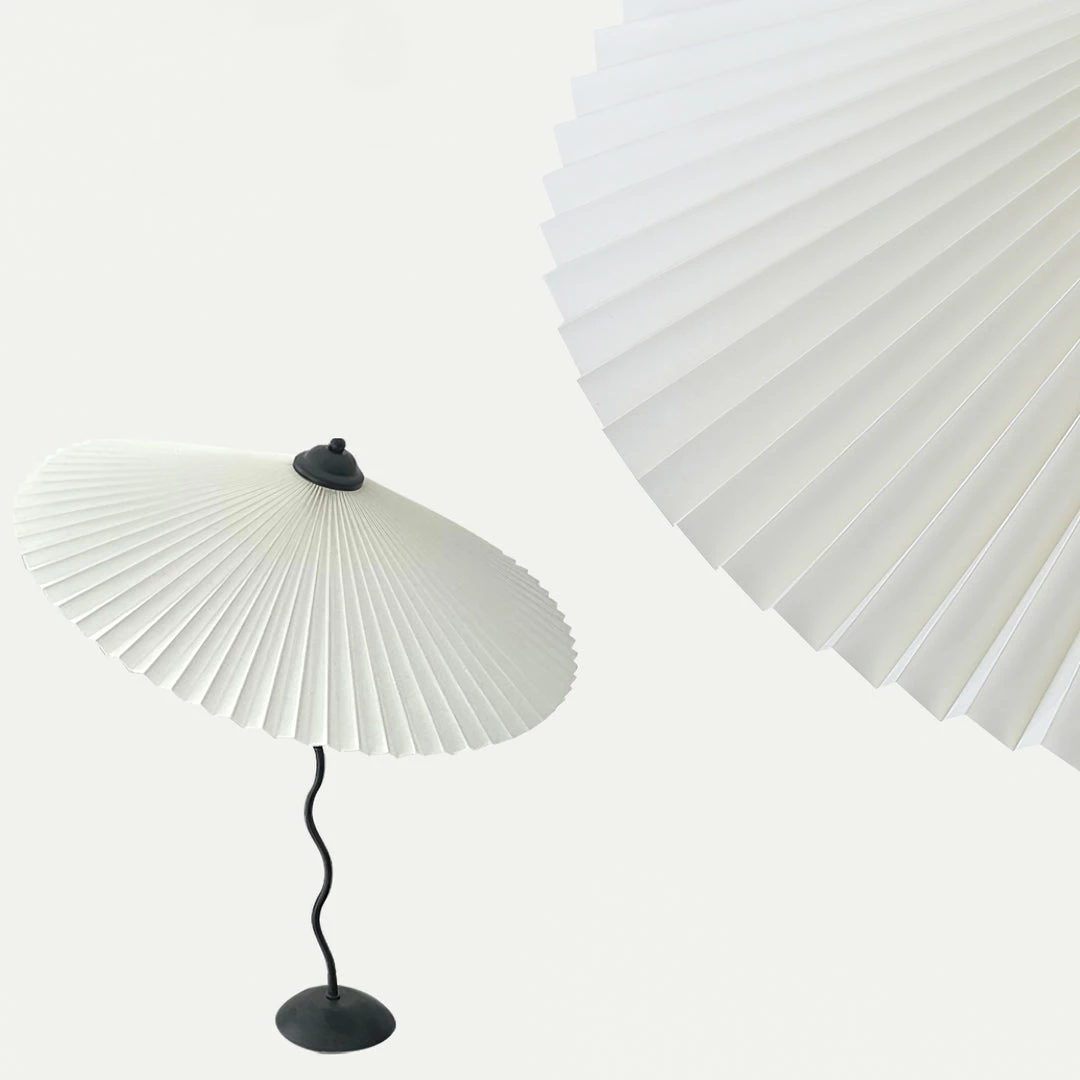 This lamp was inspired by a pleated hat/ old lampshade I found. The handcrafted Sicilian Iron base has been designed to complement the subtle lightness of the pleated lampshade. Measuring approximately 75cm in height with a cappello of 43cm in diameter, the lamp will need some basic assembly before use.ย