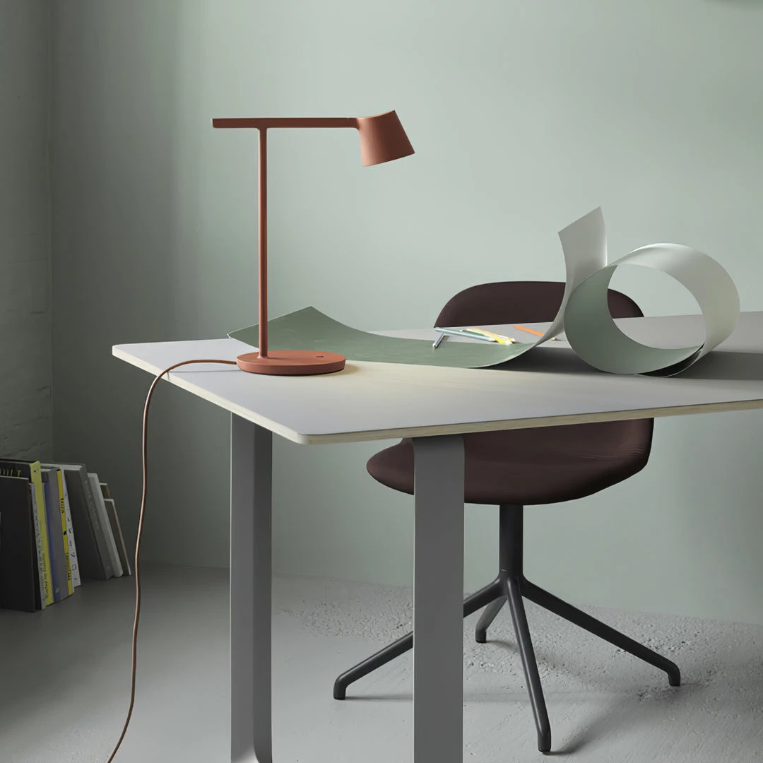 Created from the idea of stripping a design down to its essentials, the Tip Table Lamp is an example of simple, functional design with careful attention to detail. Offering direct as well as ambient light, the lamp’s adjustable head and arm feature an opal diffuser and dimmer function that effortlessly alters the volume of light.