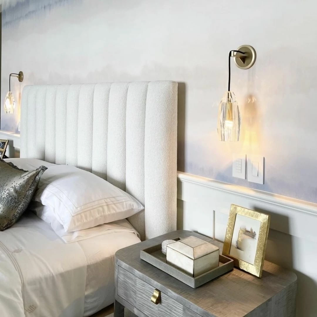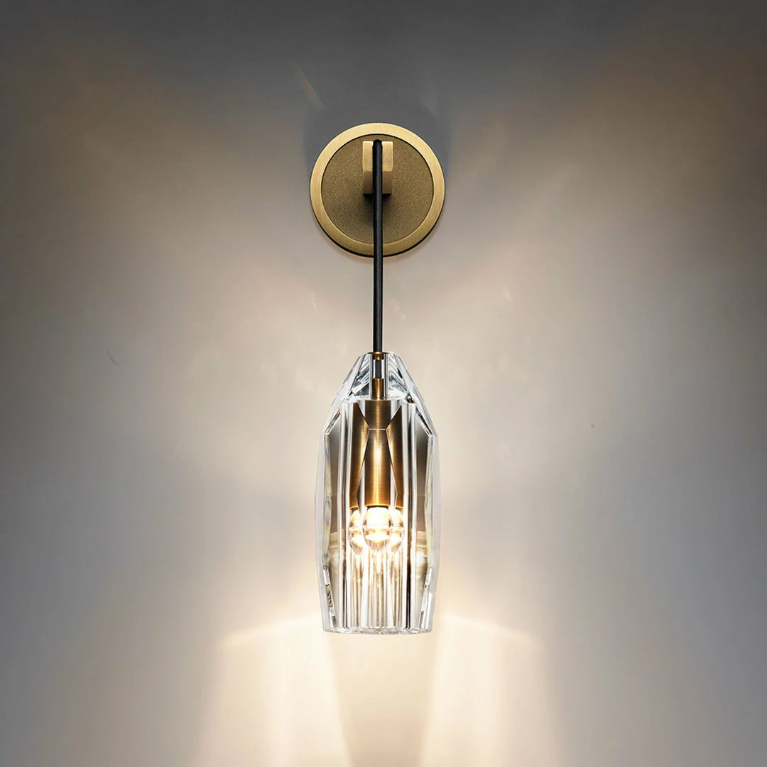 The Chatelet Sconce is machined from solid brass. All parts are hand polished and patina’d. The lead crystal shade is hand carved and polished.