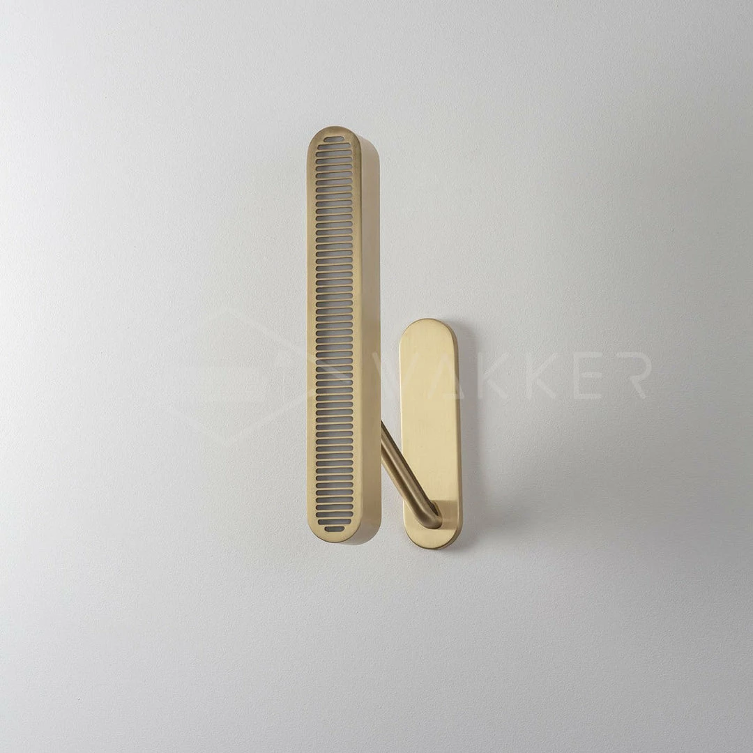 Crafted from machined brass, a sleek slotted grill sits atop an opal diffuser in Colt Wall Light. With contrasting bronze inserts on the arm, it casts a warm wash of light on both the wall and into the room.