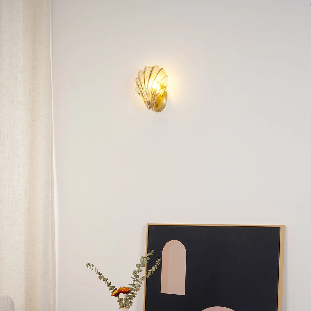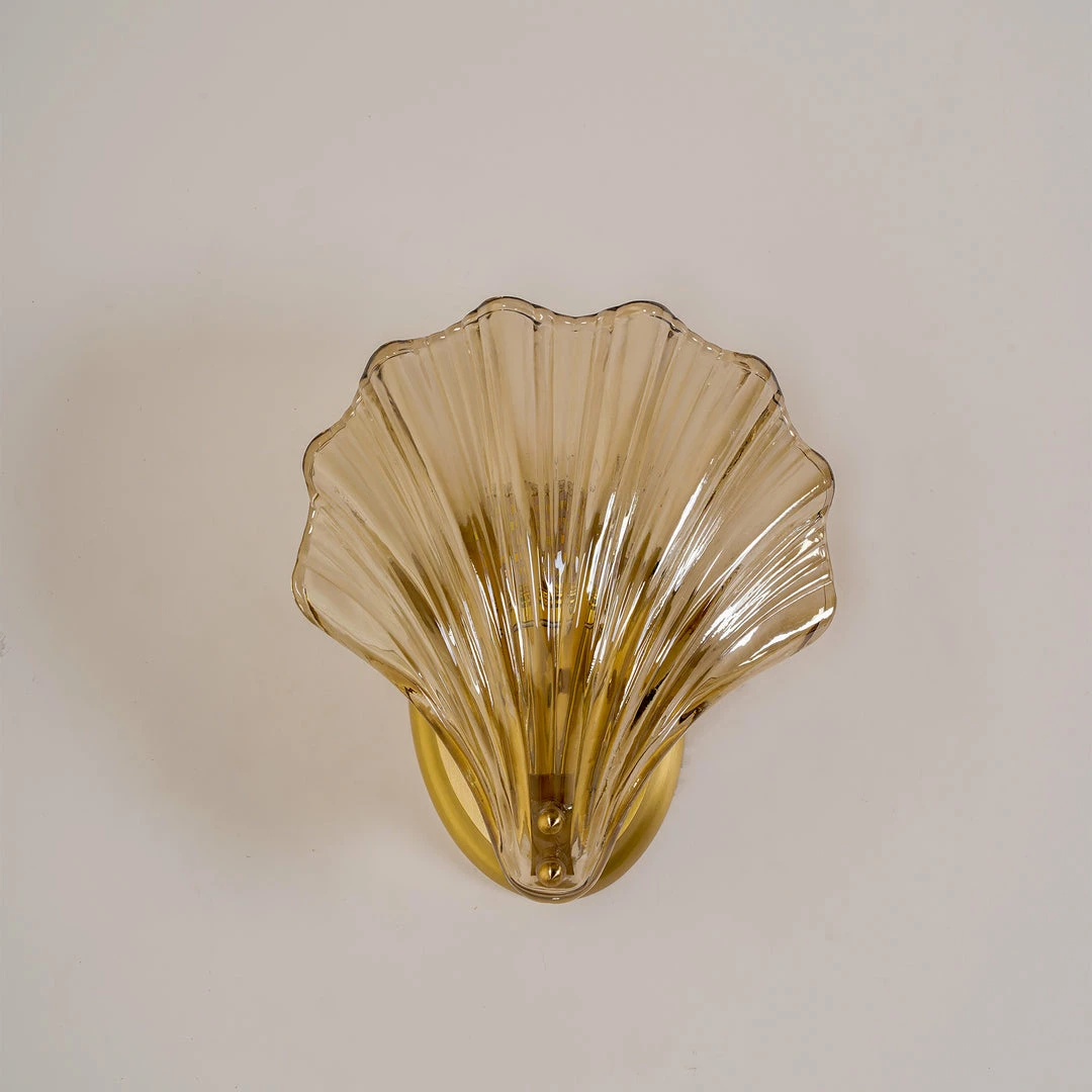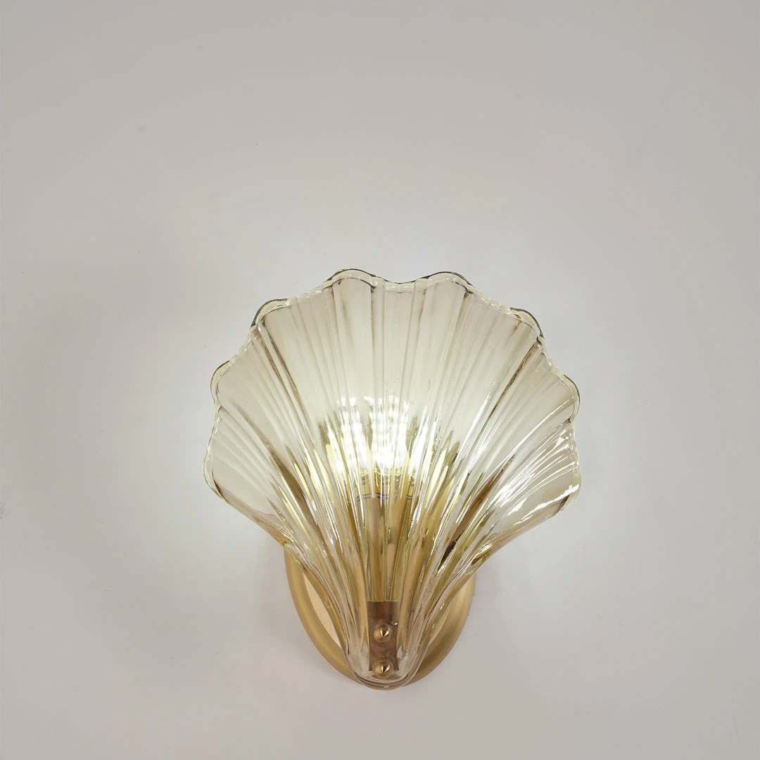Wonderful One brass wall lamps or sconces. The lamps have the form of a shell and they are in very good condition.