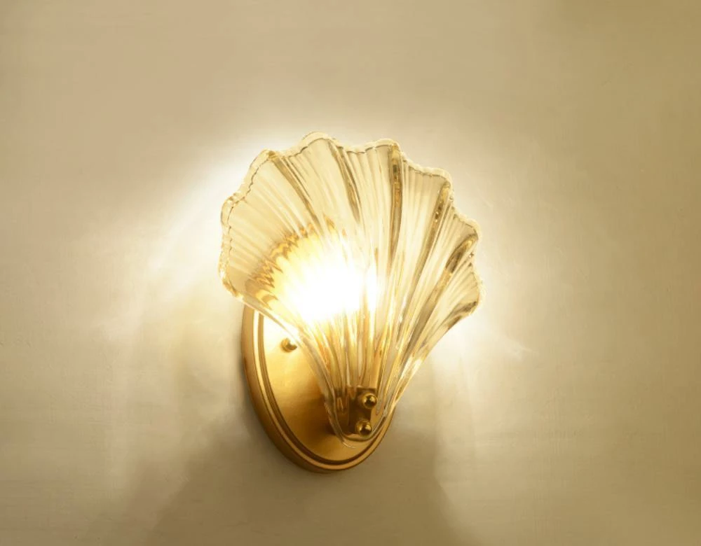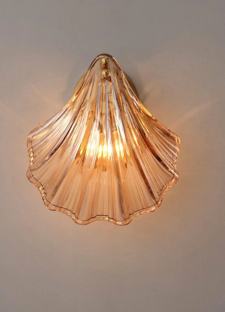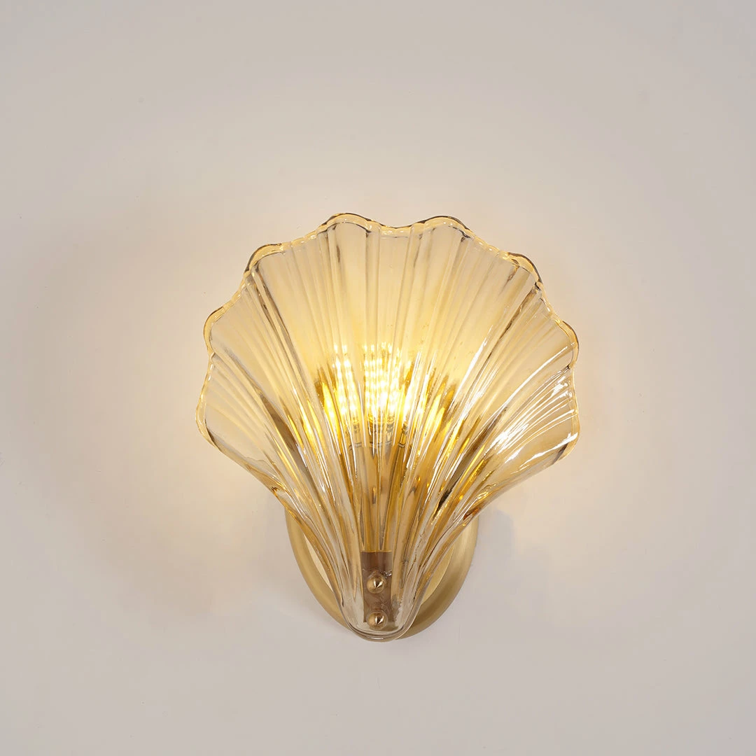 Wonderful One brass wall lamps or sconces. The lamps have the form of a shell and they are in very good condition.