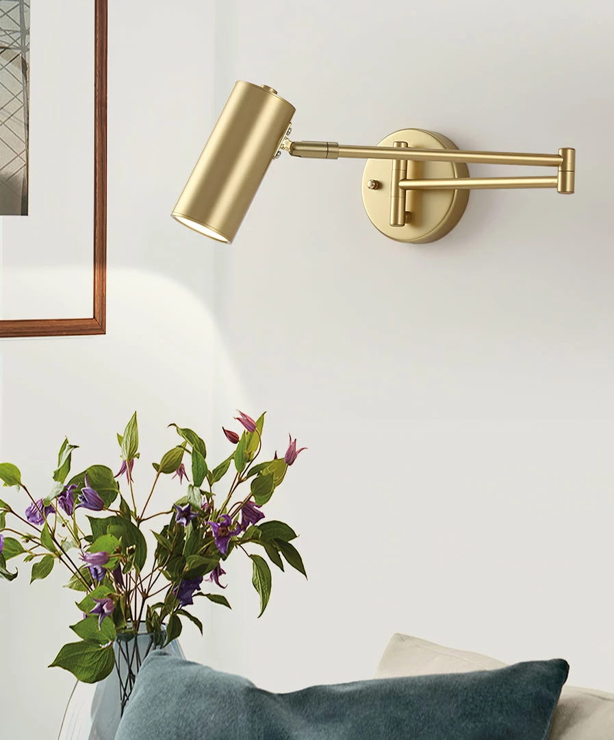 Wall sconce crafted of iron, modern and sleek design, itโs not just wall lighting, but also an ideal decoration.This swivel plug in wall sconce can be adjusting its distance against the wall, and can be turned to facing any directions to fit the lighting requirements.