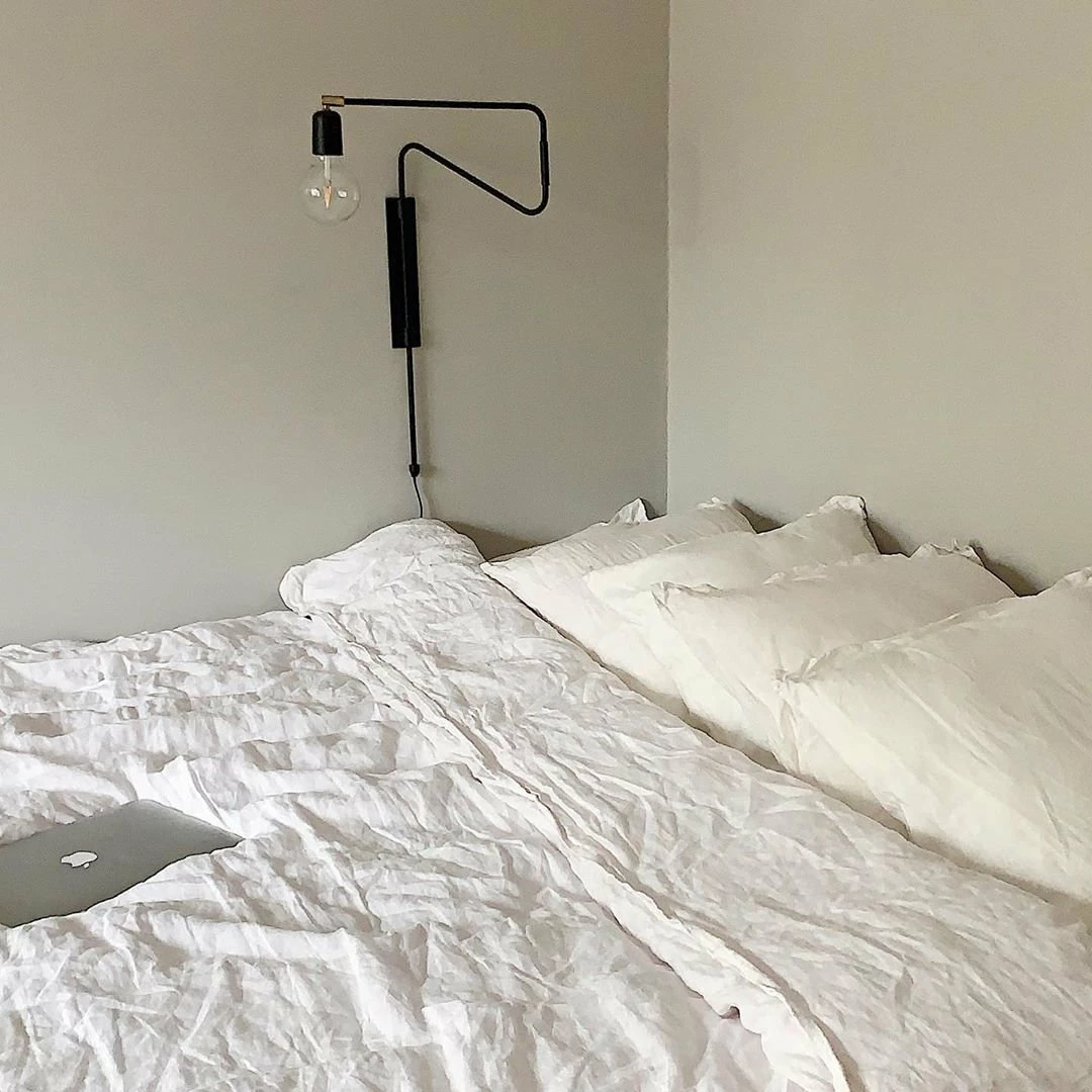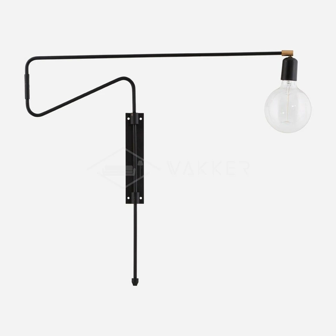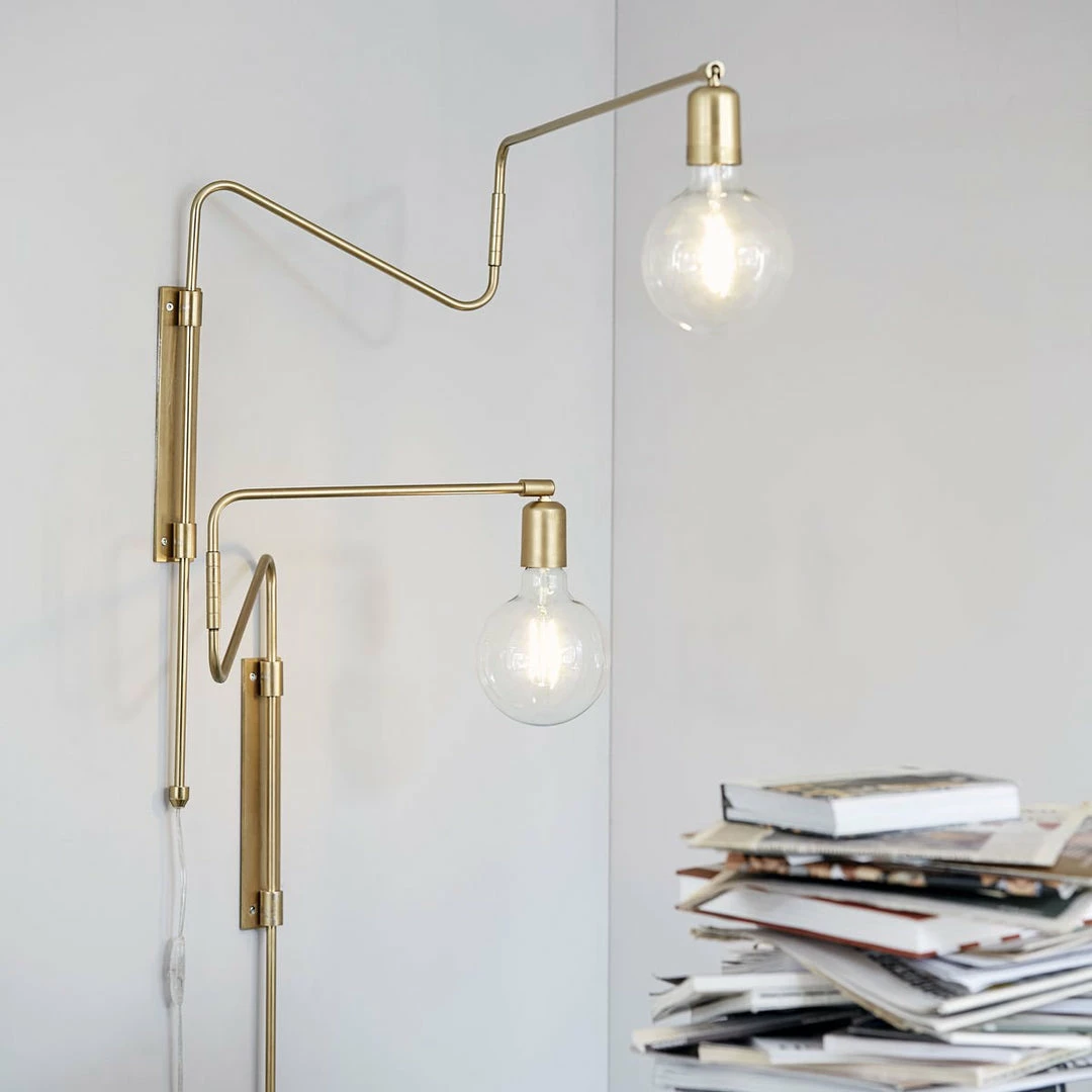 The Swing wall lamp. A lamp that is both appealing in industrial design but also has a very clever function. The lamp’s design consists of a wall bracket with a curved arm that can be twisted and pulled out from the wall to reach further. The lamp is perfect as a bedside lamp or a lamp in the living room as it can unfold when used but also pulled together to avoid being in the way.