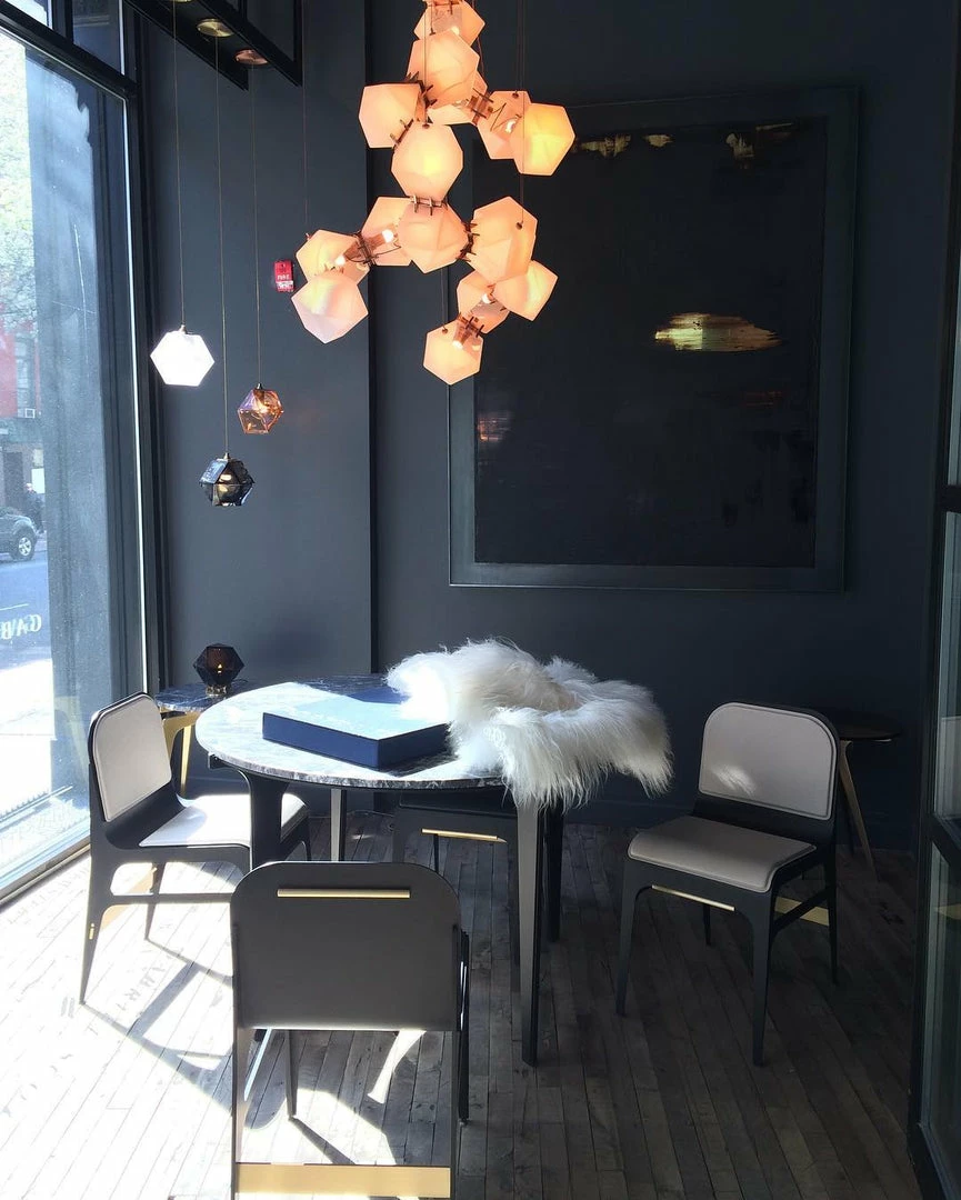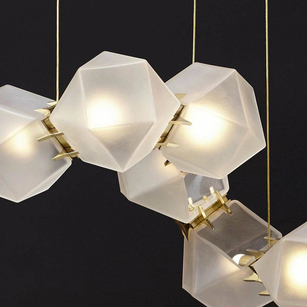 A modern piece that showcases expert craftsmanship, a series of hollowed polygons branch out into a modular system of interconnected configurations. The new textured glass finish distorts light and creates magical optical illusions when looking through the glass.